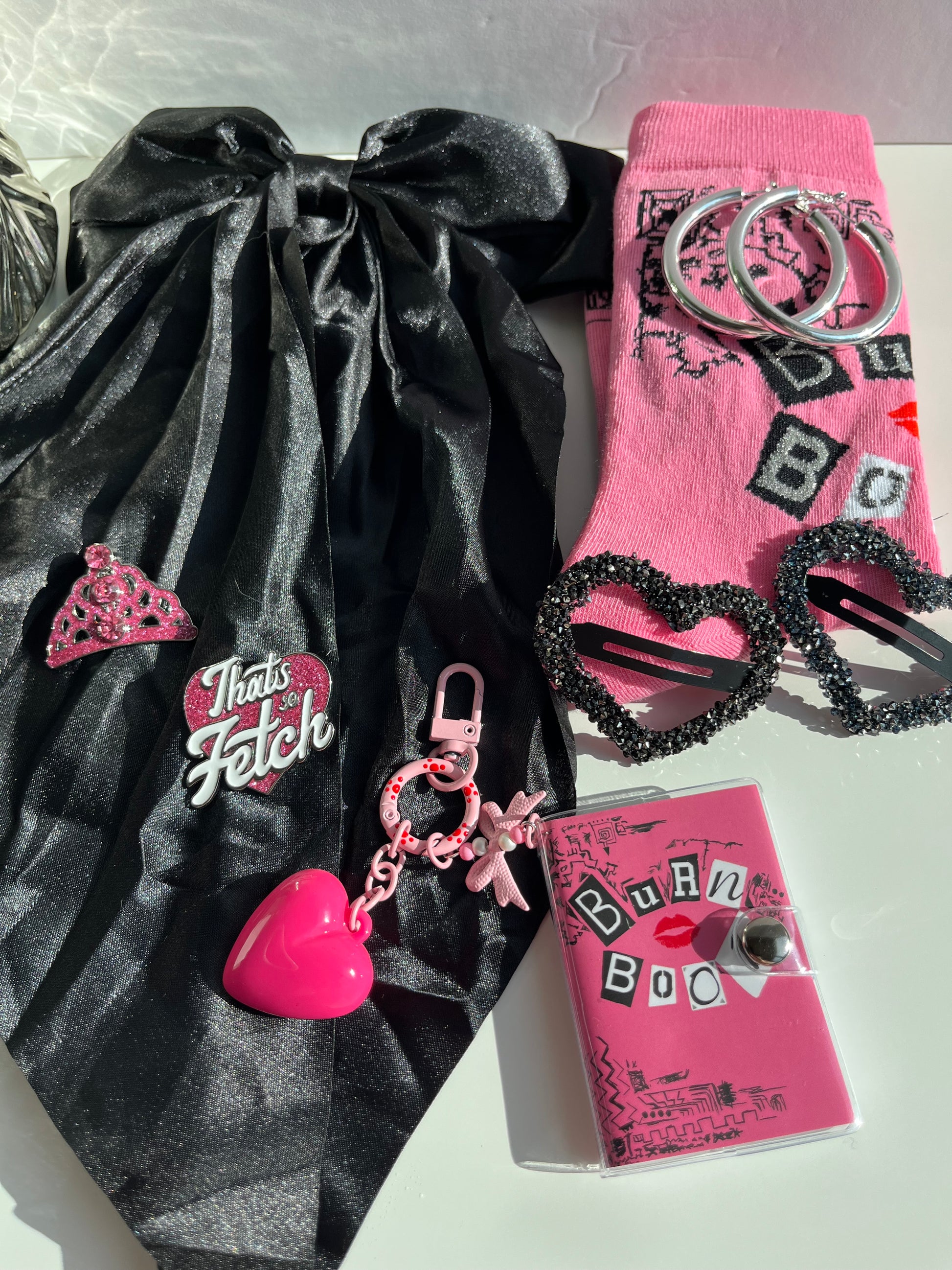 Rule the Plastics in style with this chic and sassy bundle. From sparkly accessories to cozy socks, this set is a vibe for any Queen Bee or secret Gretchen in your group chat. Comes with ✨ major main character energy. 🖤👑